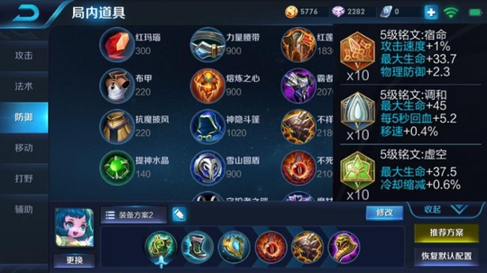 作为峡谷中只为队友回血的奶妈,其输出能力近乎于无,因此笔者推荐上面这一套纯肉装,前期救赎之翼是肯定要出的,这样不仅能加快你的经济,还能在关键时候救助友军,后期这个梦魇之牙则是看敌方有没有超强回血英雄,像程咬金,貂蝉等等,没有的话就可以换成魔女斗篷,复活甲等等防御装备!而铭文方面则推荐宿命+调和+虚空!