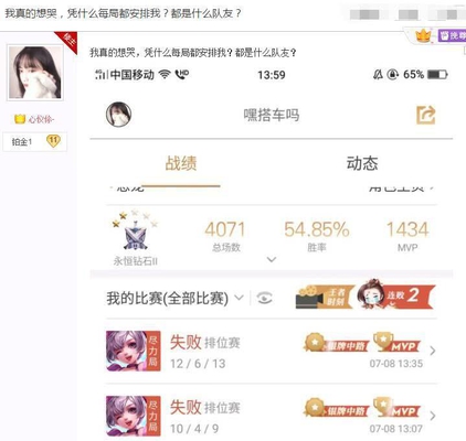 看到这里百事达觉得这位玩家也真的太倒霉了吧,都拿下了100多个人头都换不到一局胜利,看得出女玩家今天真的不适合打排位赛,这也是小编玩了这么久见过最倒霉的一位玩家了,对此玩家怎么看待呢?
