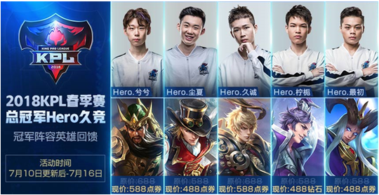 冠军阵容折扣也在今天顺势开启,参与活动的英雄有关羽、马可波罗、嬴政、刘邦以及东皇太一,参与活动的皮肤有天启骑士、激情绿茵、摇滚巨星、德古拉伯爵等等,不出所料的是大部分都是288的皮肤,因为一些英雄目前直售的皮肤只有288的,所有商城直售皮肤享八折优惠。