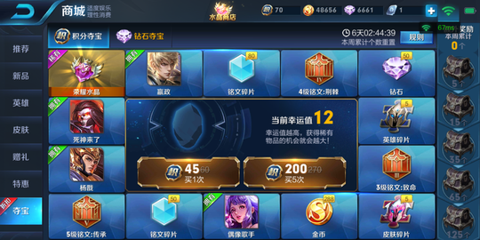 7.10更新后夺宝奖池更新 积分夺宝奖池花木兰、钟馗替换为关羽、哪吒。钻石夺宝奖池苏烈、刘禅、刘邦、战争骑士3天替换为大乔、廉颇、姜子牙、女仆咖啡3天,另外积分打折活动也要进入尾声,还没有抽到水晶的小伙伴要加快进度了哦。