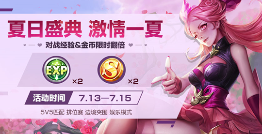 7.13日将开启双倍活动,期间参与PVP及娱乐模式经验金币双倍掉落,使用双倍道具可以叠加,最高达到四倍收益。