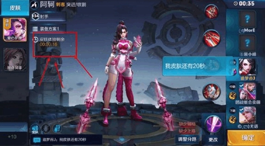 据这名玩家说他先是使用了一张阿轲的爱心护理皮肤体验卡,当体验时间只剩不到一局游戏时,点开一局匹配或者排位,这个时候大家会发现虽然体验时间已到,但是由于已经进入了对战,画面上还显示的这个皮肤依旧可以使用。当比赛结束后,惊人的一幕发生了,这个皮肤仍然没有被停用,体验时间也消失了。