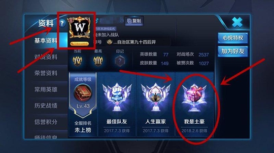 而目前,这位土豪玩家已经达到了银色成就,这就意味着还需要赠送90个皮肤才可以得到金牌成就。我们可以看到,这个土豪玩家目前只有星耀五的段位,历史上也没有拿到过最强王者。但是,不可否认的一点,就是这位土豪玩家是真的壕,光是皮肤就有149个。没想到,土豪就是这么任性,想做什么都能随心所欲。