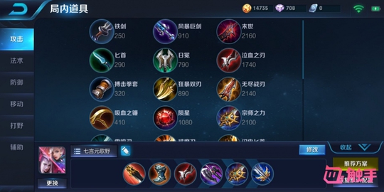 吸血刀提供续航,暗影战斧提供破甲伤害以及冷却,宗师之力加暴击效果以及被动,破军增加秒人几率!