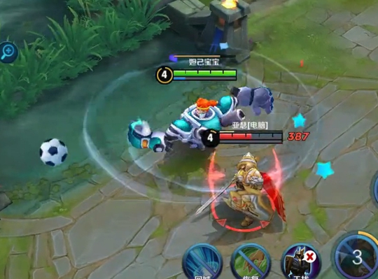 大招暴走熊猫,刘禅不断的旋转,对周围目标不断造成伤害效果。技能特效使旋转时不断的产生星星特效,同时机甲手中会出现足球,然后被抛出。