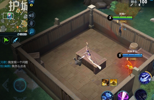 除了一些无法行动的地形外,还有一种是地图中隐藏的彩蛋,如上图中在护城渠的左下方有一栋没有房门的屋子,部分没有位移的英雄进入后只能被卡死在里面,除非队友找到女娲的传送技能才能被解救。这种屋子设置了游戏彩蛋,要使用位移技能进去后可以看到桌子上放着一把弓,是新英雄伽罗的武器。