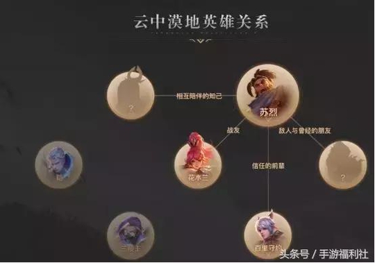 云中漠地是延续了长城版本的故事线,所以新英雄都跟长城守卫军有关。通过英雄关系图可以知道伽罗是苏烈的红颜知己,囚徒则是苏烈曾经的朋友和现在的敌人!
