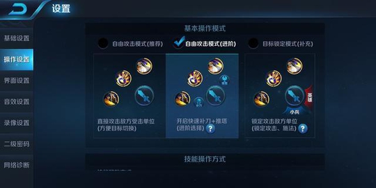 不同的玩家对于游戏的理解都不一样,尤其是高端的玩家,往往会有一些独特的游戏设置。例如《王者荣耀》的操作设置环节中,小鲨就推荐将操作模式设置成“自由攻击模式(进阶)”,方便补刀及推塔,获取更多的经济。而在优先攻击目标设置上,则根据英雄而定,坦克或辅助优先攻击最近敌方英雄,刺客和收割型英雄则优先攻击敌方残血目标。