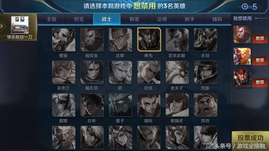 第一点:ban人、选英雄。这个初始阶段ban人和选英雄上,也是我们能否吃鸡的关键一环,因为我们单排的话其目的很明显,那就是站在最后,能能达到这个要求的英雄,无疑是那些单挑英雄以及后期英雄,像是一刀用的老夫子,或者是凯、猴子、典韦、程咬金,而法师则是选能秒人的最好,比如妲己、诸葛亮、张良等等,所以在这个初始阶段,就要选择我们不玩的英雄ban掉,以及进行选择,打好开局的基础。
