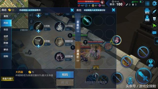 第二点:初始装备,发育。进入以后我们就会发现,这跟我们玩的"吃鸡"游戏有着本质的不同,一个是全靠捡,看准头;一个是能买,看属性。所以我们开始的800金币,在初始装备上就有了不少的选择,而且在药水一栏中还有能增加属性的BUFF可以购买,所以一刀是除了法强的都买了1点,然后配一个攻速刀提供前期的输出频率,让我们打野怪的时候效率更高一些。不过在这里要说明一下,一刀不建议刚出来就打架,因为收益太低,还是已发育为主,这也是很关键的一点。