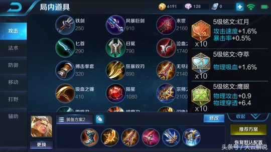 因为这个英雄是特别需要攻击速度的,因此前期主要以这个为主,攻速鞋,闪电匕首,都是很不错,而后面则来上无尽战刃以及破晓,这样伤害就起来了,破军则是为了让其伤害能力更高,面对敌方坦克也是不需要怂,之后再来上一个复活甲,这样在团战中生存就有很大的保障了,铭文方面则推荐红月+夺萃+鹰眼!