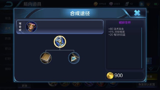合成大圣杯的过度装备,小圣杯提供的属性,在前中期实在是很鸡肋。5%的冷却缩减加上20/每5秒回蓝效果,在王者荣耀中,实在低的可怜。对于一些耗蓝大的法师,即使出了这件装备,也是在拖节奏,并没有太大的实际意义。所以,破碎圣杯建议还是不要购买,毕竟属性很鸡肋,在前期出的意义不大,反而是拖节奏的存在。