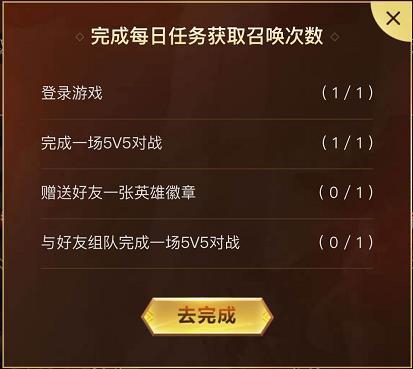7月11日到7月17日之间每天登录游戏、完成一场5V5对战、赠送好友一张英雄徽章、与好友组队完成一场5V5对战都能获得一次召唤英雄会长得次数,每日最多召唤4次。