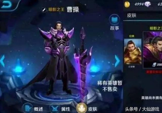 曹操这个英雄在这个赛季中因为官方的一项决定,那就是将曹操的金币价格改为588钻石价,让这个英雄在玩家们心中的地位大打折扣,人们似乎忘记了曹三刀曾经有过的那些辉煌,同样的,有这么一款皮肤似乎也是一样被玩家们和天美遗忘了那就是曹操的暗影之王皮肤,这一款皮肤和孙尚香的蔷薇恋人一样,属于很早期的内测玩家特有皮肤,正式服上架之后就直接下架了这款皮肤,所以啦,小编给你钱,你要是买得到我连手机都可以送给你。