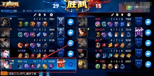不过这个还不是重点,重点是剑仙出来之后,惊讶的发现了自己的荣耀战力,在这一局游戏结算的时候,居然暴涨了五百,然后剑仙成功的变成了国服最强,甚至在国服最强的排行里面,都是非常靠前的了。