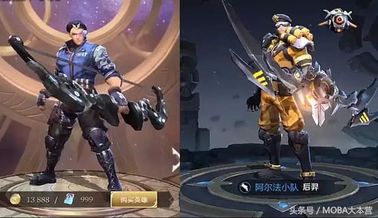 这个是国服和外服的后羿对比。外服的后羿显得异常的强壮,而国服后羿显得是和队长一样那样具有领导气息。