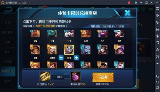 不过,在昨晚小编意外的发现,王者荣耀的背包界面,出现个体验卡限时兑换商店。在这里玩家可以用体验卡,兑换自己喜欢的英雄的体验卡,而且还可以兑换幸运礼包。