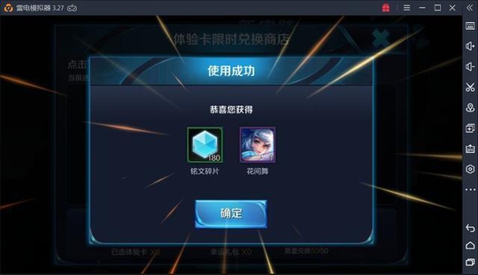 幸运礼包可以开出铭文15个或者60个,还能开出花间舞皮肤(永久)。这样的礼包,对小编这种不充钱的玩家来说,绝对是必选的。但是礼包有兑换限制,只能兑换50个。一张体验卡,兑换1个礼包,并且还不能一次兑换50个,小编分了2次兑换。第一次40多个幸运礼包,结果开出了一堆铭文碎片。