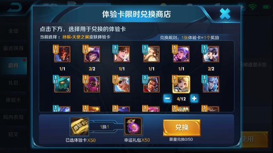 首先我们来了解一下这个体验卡兑换活动的规则。体验卡包括皮肤以及英雄的体验卡,那么大家也可以兑换英雄以及皮肤,可以将不喜欢的兑换喜欢的,3日的上限是3次,1日的上限是7次。