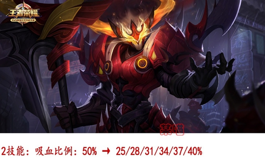典韦被削弱了二技能的吸血比例,前期典韦依靠二技能完全可以利用兵线进塔后攻击回血,高额的比例完全能前期满血抗压,后期的吸血比例降低了10%.