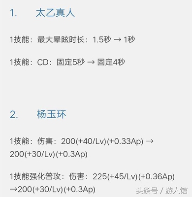 首先受到削弱的就是太乙真人和杨玉环,这两个英雄之所以被削完全就是KPL的锅啊。谁叫他们在比赛中那么强呢?其实这两个英雄在我们的排位中并没有那么的强势。这次削弱肯定会让这两个英雄的出场率和胜率进一步减少。