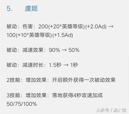 虞姬也是这次变动非常大的一个英雄,虽然看上去被动是削弱了一些。但是现在她的二技能可以直接获得一次被动效果,同时大招也增加了一个落地后攻速加成的特效,我个人觉得这次对她应该算是一个增强,你们觉得呢?