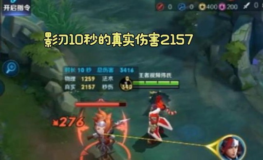 接着我们把电刀卖掉换上影刃,同样对木偶韩信攻击10秒,而测试结果为影刃的10秒真实伤害为2157.可以看出在只装有一把武器的情况下影刃的真实伤害比电刀低一些。
