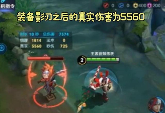 接着我们把电刀在换成影刃进行测试,测试后真实伤害为5560,在装备出满后可以看出影刃的真伤效果比带电刀的真伤高出1000多,别小瞧这1000多的真伤,在游戏中有的时候就多出这1000的真伤就能决定对局的胜负。