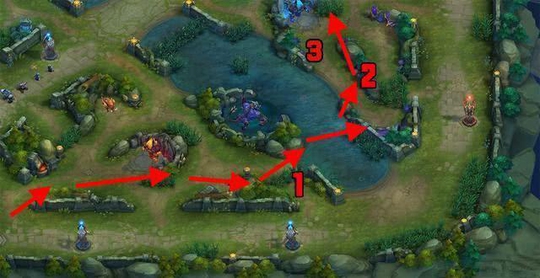 为何选在3号位置做停留,因为这个位置既可以闪现过墙逃跑也可以追击敌人,非常不错的位置。