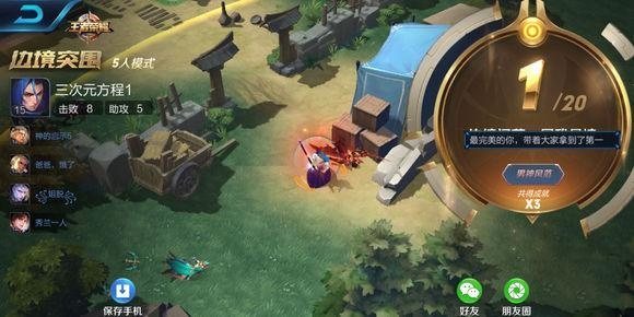 而且在这一模式下感觉自己变强了很多(也有可能是王者荣耀初试100人同时对战的原因有很多人手机卡顿,对手机要求比较高)到游戏最后一挑3,看到没最完美的我带着大家拿第一并完成3个成就-----男神风范。