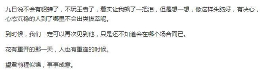 不同于嗨氏,粉丝多,黑粉也多,同时节奏不断,九日的粉丝们就相对稳定,并且非常忠实,在九日的直播间,也常常能看到女粉贼美的标签,也足以证明他的女粉丝力量多么强大。而九日直播生涯的一个转折点就在于毁约虎牙跳槽斗鱼了,正所谓一山不容二虎,九日和嗨氏同在虎牙并且都以貂蝉作为自己的招牌英雄,其之间的竞争自然是显而易见的。虽然九日技术不输给嗨氏,但是在人气上也的确是稳输给嗨氏的,这个时候斗鱼正好在大力发展王者荣耀板块,他如若跳槽斗鱼,得到的推广资源恐怕就不会比嗨氏来得差了。九日也是经过了深思熟虑才想要跳槽斗鱼的吧,但也因此,他遭到虎牙起诉,被冻结650万资产。