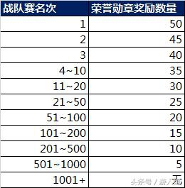 至于这个战队赛荣誉勋章怎么得?还是每周参与和首胜分别可以得5个,然后赛季结束的时候按上表获得荣誉勋章,不过必须要在战队中获得至少10000点战队活跃,才能获得这个奖励,因此指望赛季末来混一个是不太现实的。