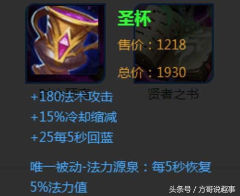 圣杯的法术攻击是180,卖掉后再加1700多金币可以买个贤者之书,能提供400的法术攻击,同时增加1400点生命,输出翻倍,伤害提高了一倍多,还增加了生存能力,这在团战中相当重要!