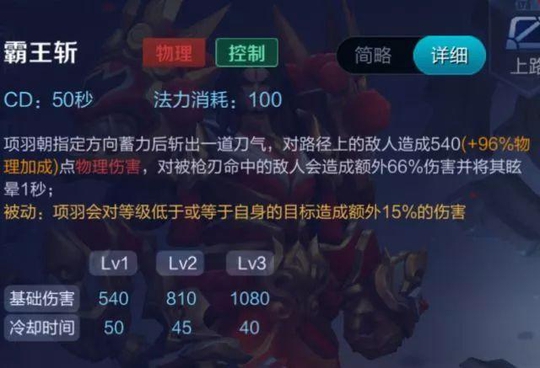 其二是项羽对每个单位都可额外造成物理伤害,对英雄单位造成最大生命值的6%的物理伤害,对小兵和野怪造成300+25/lv的物理伤害,对防御塔造成一个随等级成长且与防御塔最大血量相关的高额物理伤害。这个技能是项羽非常实用的技能,无论是平时对线清线还是团战打AOE伤害,这个技能都非常关键。这个技能对每个单位都分别计算内置CD,因此需要尽量多a到不同的目标。同时这个技能对防御塔的伤害极高,在推塔的时候可以好好利用起来。