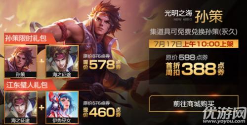 错过兑换活动的玩家也不要担心,商城会同步上架新英雄孙策。
