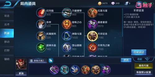 触手主播浅笑推荐国服东皇太一出装:救赎之翼+抵抗之靴+霸者重装+不祥征兆+不死鸟之眼+魔女斗篷。推荐铭文:10调和+10虚空+10宿命。