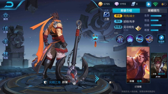 打开王者荣耀英雄登录界面,把孙策转到封图的那个角度的时候,可以看到——