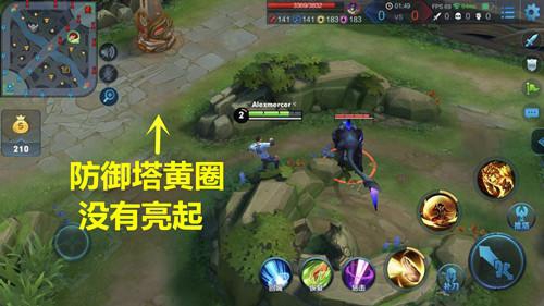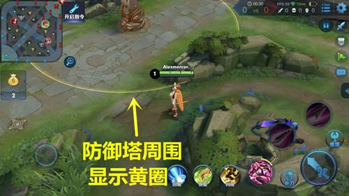 当我们靠近敌方防御塔时,防御塔周围会出现一个黄圈。