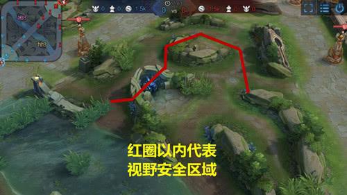 在红线以内的区域,能保证不被防御塔探测到视野,以后大家在反野的时候一定要注意走位细节。