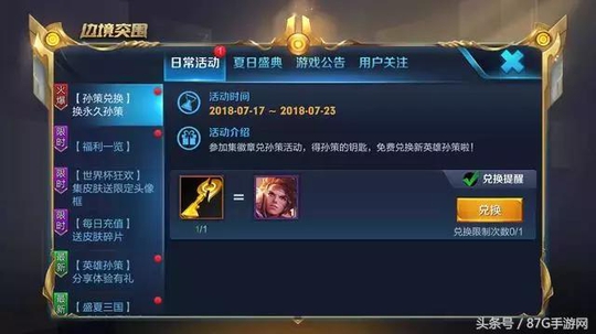 大家好,我是七七,今天孙策已经正式上架,这个英雄从曝光到上线体验服,到正式服,简直跟坐上了火箭一般,而获取方式也是轻松简单,基本只要参与活动,就可以免费获得这个永久英雄~