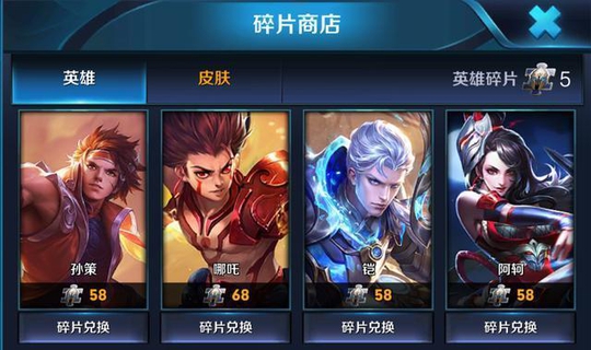 2、英雄碎片商店58英雄碎片兑换;