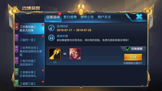 王者荣耀孙策在今日上午已正式上线,这个英雄的获取途径很特别,跟之前的铠一样,拥有多种获取途径。但最佳获取途径还是钥匙兑换,这种方式只需要参与活动,即可免费获得永久孙策。