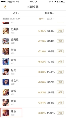 这里还发生了一个有趣的事情,也不知道是官方助手设计错误还是饭饭自己的手机显示错误,在胜率榜单上孙策的名字居然变成了狂铁!