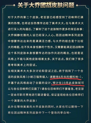 王者荣耀 官方确定大乔团战皮肤10月份上线 李白的即将上线