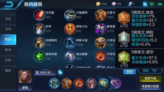 因为其清理兵线的能力不能说很快,因此前期建议先出一个红莲斗篷,这样不管是清小兵还是对线消耗敌人的血量,都是能够做到很好,之后立马补不死鸟之眼,因为这件装备的被动对于程咬金来说帮助是最大的!后面再来上一件黑切,配合极寒风暴冷却缩减达到了35%,这样大招的CD基本上只有10几秒!铭文方面推荐宿命+调和+虚空,因为你主要是打牵制,伤害对于你来说可有可无!