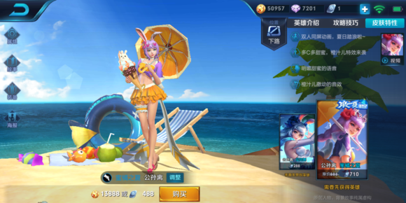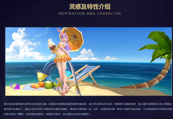 王者荣耀公孙离蜜橘之夏浪一夏限定皮肤公布也有一段时间了,但其技能特效一直没有被爆出来,今晚小编发现官方爆料站更新,除了技能特效以外,一同更新的还有其灵感及设计思路,但是!小编发现这款皮肤的爆料站信息非常稀少,连模型也没有放出来,只是放了一张这款皮肤游戏内的截图便草草了事。废话不多说,一起来看下吧。