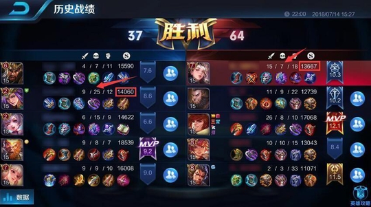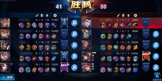 上图可见,疯狂自杀断线到后期参团的雅典娜经济并不落后,反而要比我方正常对线的杨玉环、程咬金以及花木兰经济还要高。