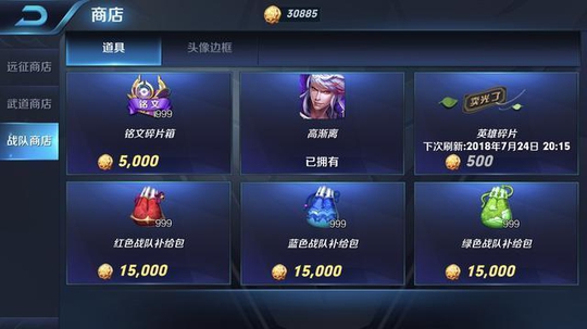 再就是关于战队商店的内容了,之前说战队商店会有改名卡,但是等了两个星期也没有刷新出来,足以看出这个几率到底有多低,最恶心的是一周才能自动刷新一次,想要换改名卡可能就是梦吧。