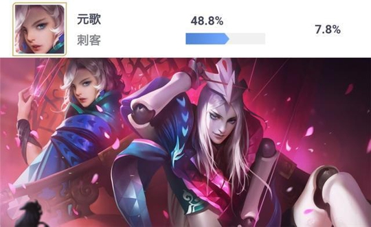 元歌目前胜率已达到48.8%,上线之初的胜率仅为33.4%,已经上涨了15.4%,元歌也是胜率涨幅最高的英雄,排位胜率即将突破50%。目前元歌在高分段很受欢迎,而且还非常强势恶心,已经属于非ban必选的一类英雄了。