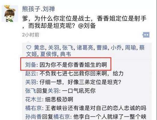 当然,这一波最神奇的,还是刘禅发的朋友圈,刘禅提出来了一个很经典的问题,那就是,刘备的定位是战士,而香香的定位是射手,那么这个时候问题就来了,为什么刘禅是坦克呢?
